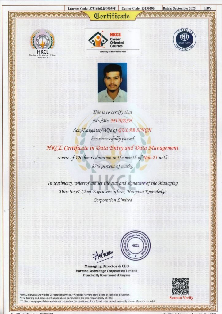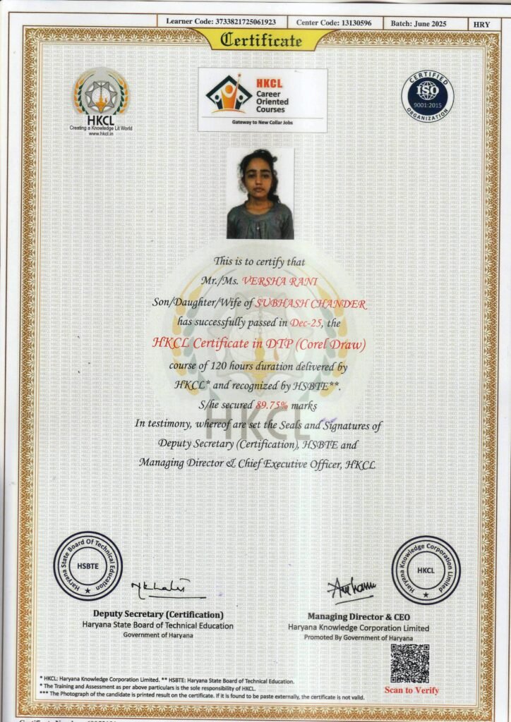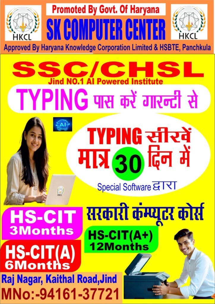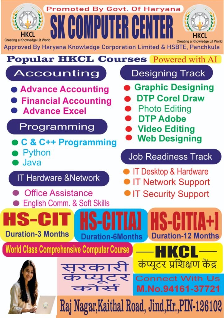 It gives me immense pride and pleasure to serve as the Director of SK COMPUTER CENTER. Established with a vision to empower the youth of Haryana, our institute is committed to delivering quality, job-oriented professional and technical education along with entrepreneurial skills, enabling students to build successful careers and even start their own ventures.SK COMPUTER CENTER strives to be a valuable asset to the region and the nation by addressing diverse skill development needs. Our objective is to offer industry-relevant courses aligned with the guidelines of the Ministry of Electronics and Information Technology and the National Skill Development Corporation, ensuring that our students receive recognized and career-focused training.Our curriculum is carefully designed to promote personality development through strong conceptual knowledge, practical training, and internship opportunities. We are dedicated to nurturing confident, competent, and responsible individuals who are prepared to excel in their professional and personal lives.