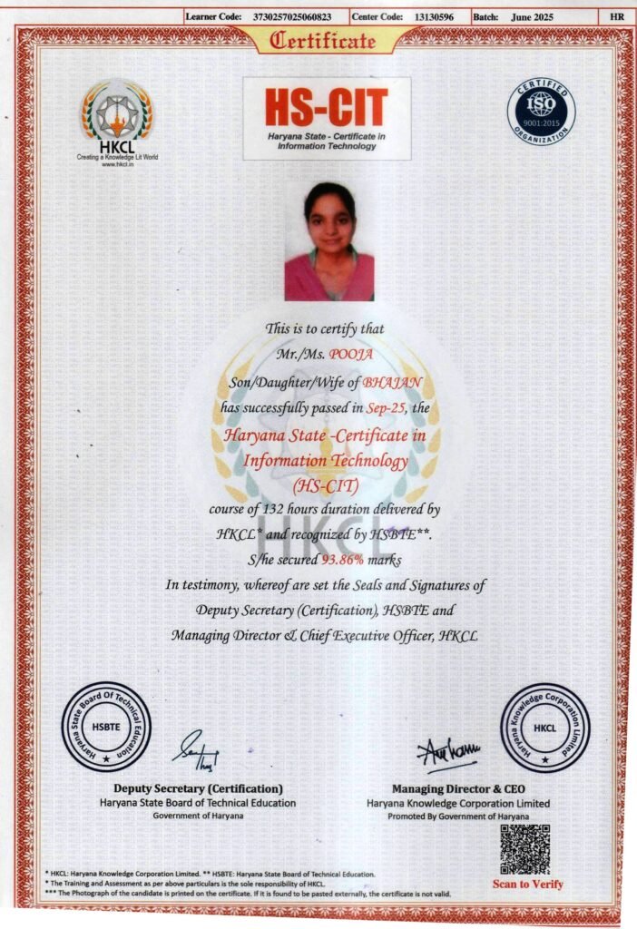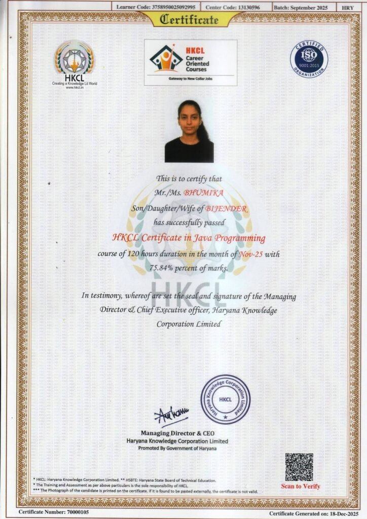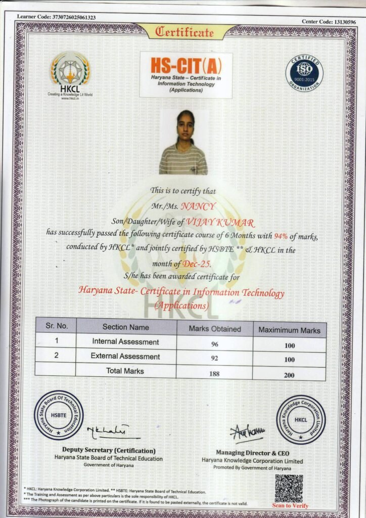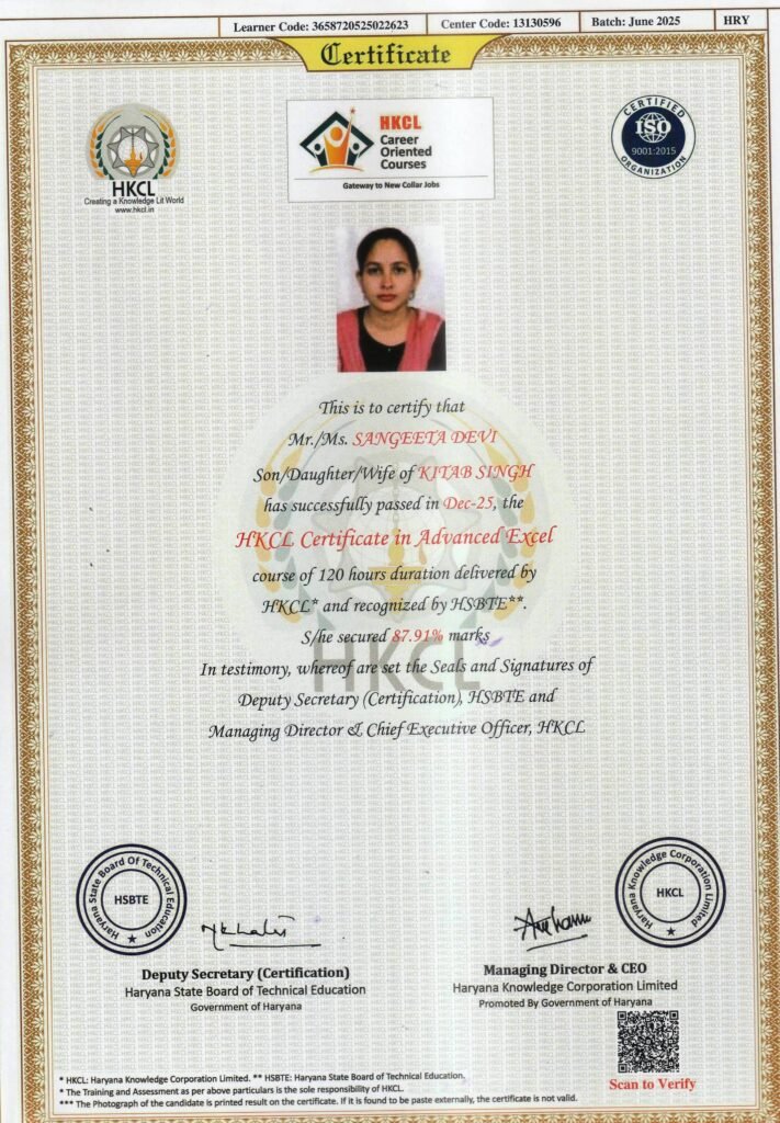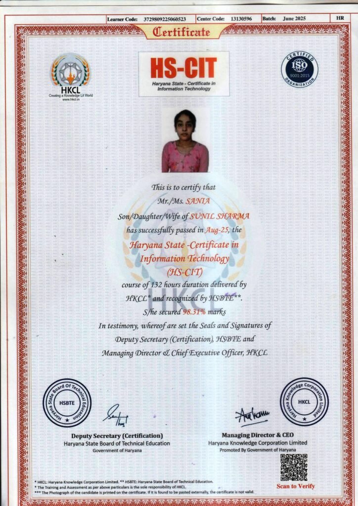 It gives me immense pride and pleasure to serve as the Director of SK COMPUTER CENTER. Established with a vision to empower the youth of Haryana, our institute is committed to delivering quality, job-oriented professional and technical education along with entrepreneurial skills, enabling students to build successful careers and even start their own ventures.SK COMPUTER CENTER strives to be a valuable asset to the region and the nation by addressing diverse skill development needs. Our objective is to offer industry-relevant courses aligned with the guidelines of the Ministry of Electronics and Information Technology and the National Skill Development Corporation, ensuring that our students receive recognized and career-focused training.Our curriculum is carefully designed to promote personality development through strong conceptual knowledge, practical training, and internship opportunities. We are dedicated to nurturing confident, competent, and responsible individuals who are prepared to excel in their professional and personal lives.
